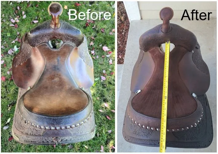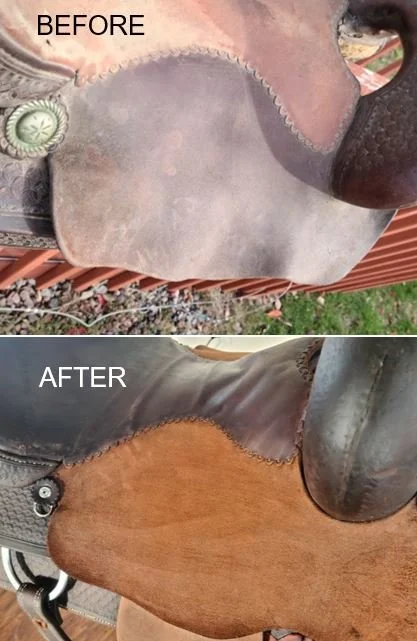 Wish that trophy saddle wasn't, well, a trophy saddle? Includes a deep clean, oil, condition, and safety inspection. Rough out can typically be removed in-house, top grain (smooth leather) typically requires retooling to blend. Price varies on size and complexity of piece.