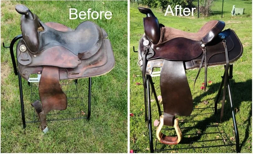 Includes a deep clean, oil, condition, and safety inspection. Option for patch, stitching, or complete replacement. No tooling done in-house but replication of designs is available through a 3rd party. Dying and reinforcement of fenders with stirrup leathers available.